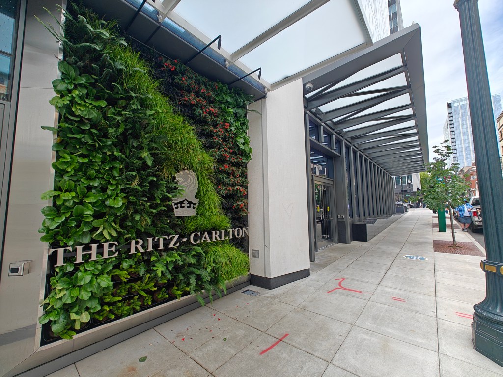 We flew Alaska Airlines from SNA to PDX, arriving at 5PM. Made our way to the Lyft pick-up area in the parking complex and 25 minutes later, we arrived at the new Ritz-Carlton, Portland.
