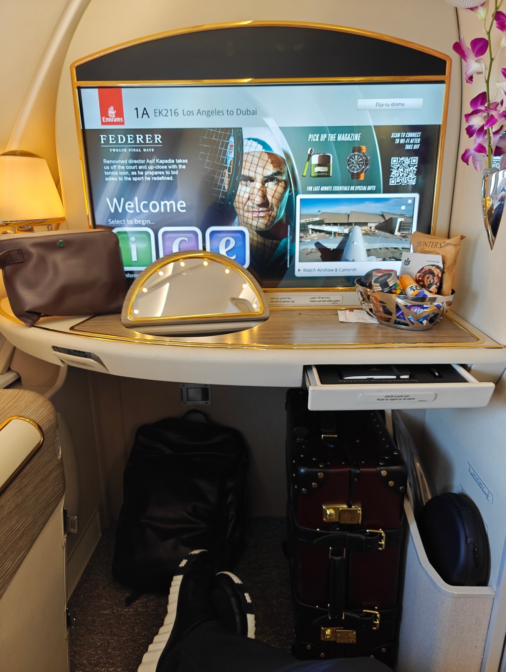 The flight home would be on Emirates First Class. The first LAX-DXB sector will be on the wonderful A380 followed by the 777-300ER to KL.