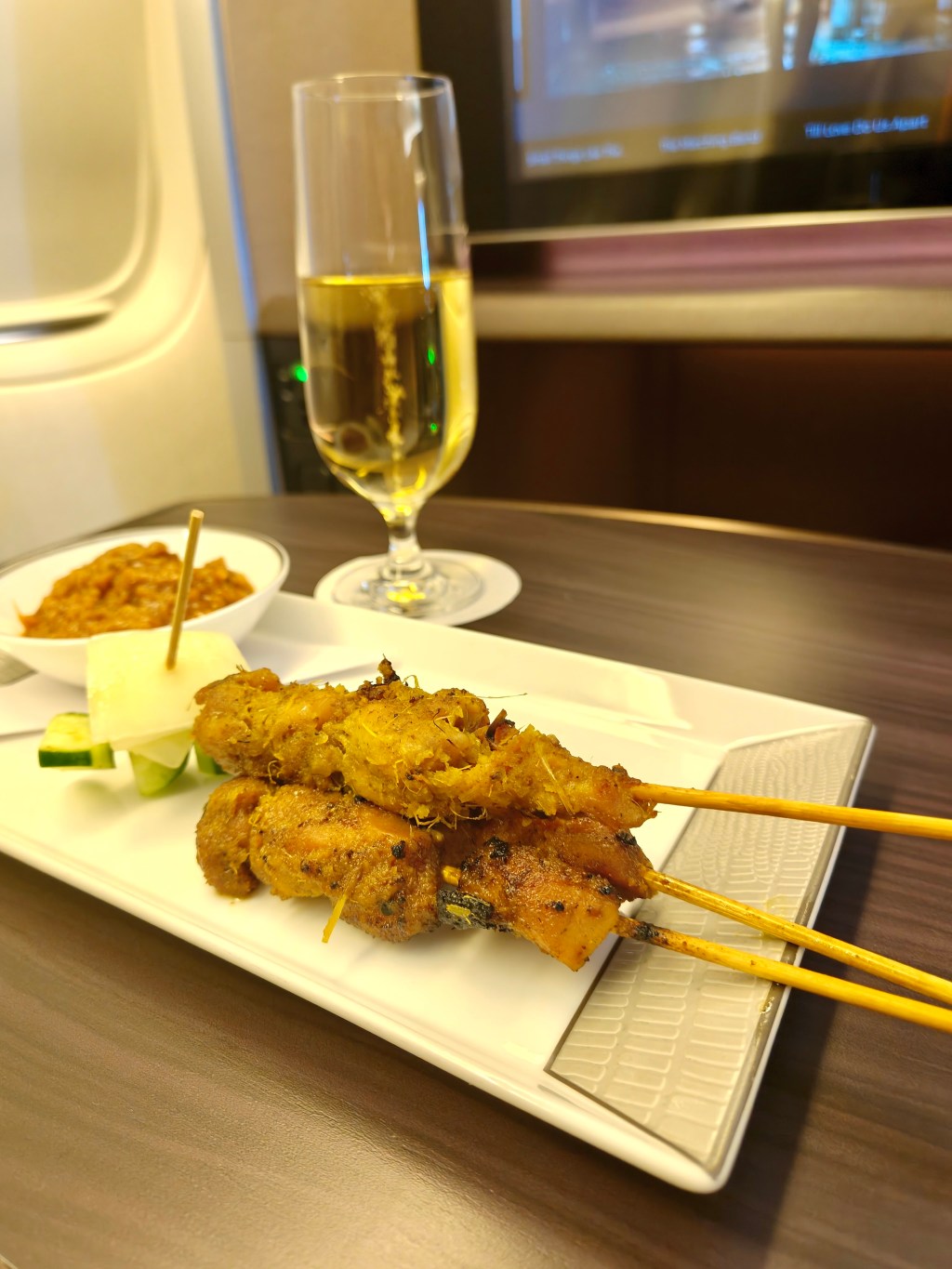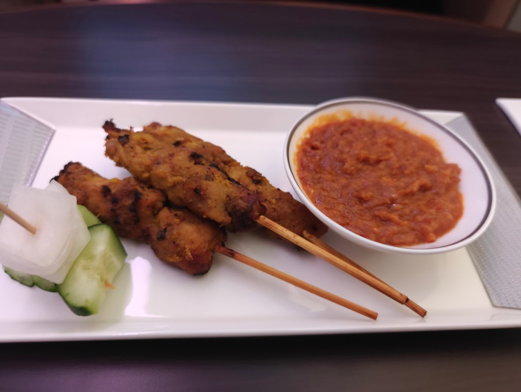 Once onboard the legendary SQ service takes over beginning with SQ’s Satay (Malaysia Airlines still has the better satay in the sky)