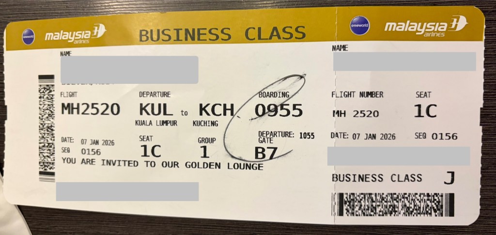 We waited close to 30 minutes to take off due to traffic. Befriended a very experienced judge who was in 1A and we chatted the whole flight to Kuching, arriving at 115PM.